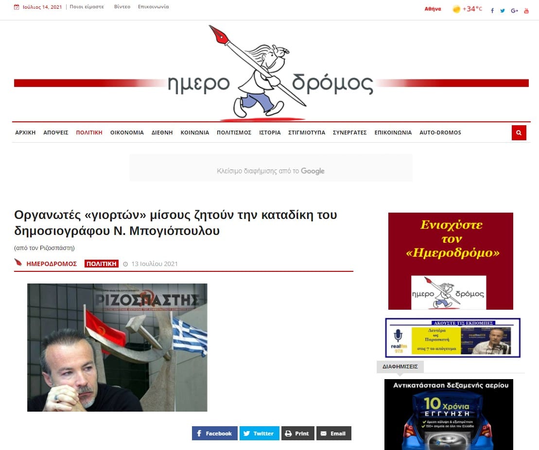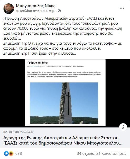 Ανακοίνωση για τη δίωξη δημοσιογράφου που γυρίζει πίσω το χρονολόγιο σε εποχές φυλακίσεων και εκτελέσεων δεν έχει βγάλει ακόμη η ΕΣΗΕΑ! Αντίθετα τάχθηκαν άμεσα υπέρ του Μπογιόπουλου με ανακοινώσεις τους το ΠΑΜΕ ΤΥΠΟΥ και ΜΜΕ και το ΚΚΕ