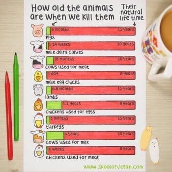 Η βιομηχανία του κρέατος που έχει γιγαντωθεί τα τελευταία 100 χρόνια φροντίζει ώστε να σκοτώνει τα ζώα όχι όταν γεράσουν, αλλά όταν πιάσουν το σωστό βάρος ή σταματήσουν να είναι παραγωγικά. Μπορεί ο πίνακας που επιμελήθηκε το skoolofvegan.com να έχει κάποιες υπερβολές επιλέγοντας προφανώς ράτσες με μεγαλύτερο προσδόκιμο ζωής ή το χαμηλότερο όριο σφαγής, όμως η πραγματικότητα δεν είναι και πολύ διαφορετική.