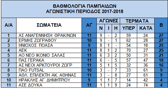 Ακόμα και αποβολή είχαμε, σπάνιο φαινόμενο για αγώνες ποδοσφαίρου παιδιών. Πλέον η ΑΕΚ φαίνεται να εδραιώνετε στην πρώτη τετράδα του πρωταθλήματος και με μόλις δυο πόντους διαφορά απ την πρώτη θέση ο δεύτερος γύρος που ξεκινάει στις 14 Ιανουαρίου αναμένεται με ιδιαίτερο ενδιαφέρον.