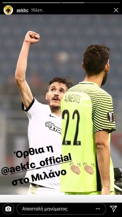 Συγχαρητήρια μοίρασε και η ομάδα μπάσκετ της ΑΕΚ για αυτή του ποδοσφαίρου, για την εμφάνιση των παικτών της ομάδας του Χιμένεθ, απέναντι στην Μίλαν στο Σαν Σίρο.