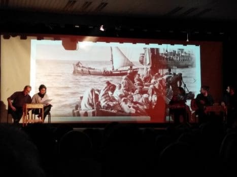 Απέραντη συγκίνηση στην κατάμεστη αίθουσα… Μνήμες, Προσφυγιά, Αντίσταση… με κεντρικό ήρωα τον Μικρασιάτη ποδοσφαιριστή της ΑΕΚ Σπύρο Κοντούλη που εκτελέστηκε από τους Γερμανούς το 1944.