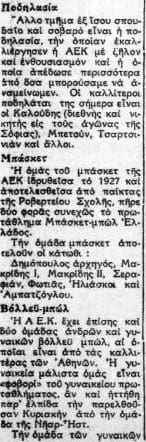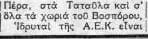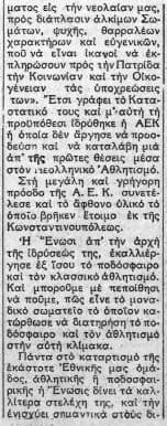 Η ΑΕΚ είναι “η συνισταμένη της αθλητικής κινήσεως που υπήρχε πριν από το 1922 στη Κωνσταντινούπολι, της κινήσεως που εκδηλώθηκε στο Πέρα, στα Ταταύλα και σ’ όλα τα χωριά του Βοσπόρου”.