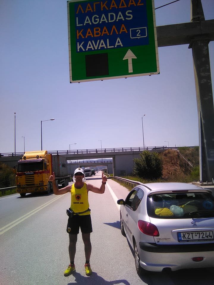 Ο Ενωσίτης υπερμαραθωνοδρόμος συνέχισε για δεύτερη μέρα (7-7-2015) το ταξί του για Τραπεζούντα. Όπως σας ενημερώσαμε τη Δευτέρα, ο Τεμόν ΑΕΚ ξεκίνησε από Άρδασσα και έτρεξε με τη συνοδεία του Συλλόγου Δρομέων Πτολεμαΐδας μέχρι την Καστανιά, στο μοναστήρι της Παναγίας Σουμελάς στο Βέρμιο. Από εκεί κατηφόρισε προς Θεσσαλονίκη, όπου και διανυκτέρευσε.