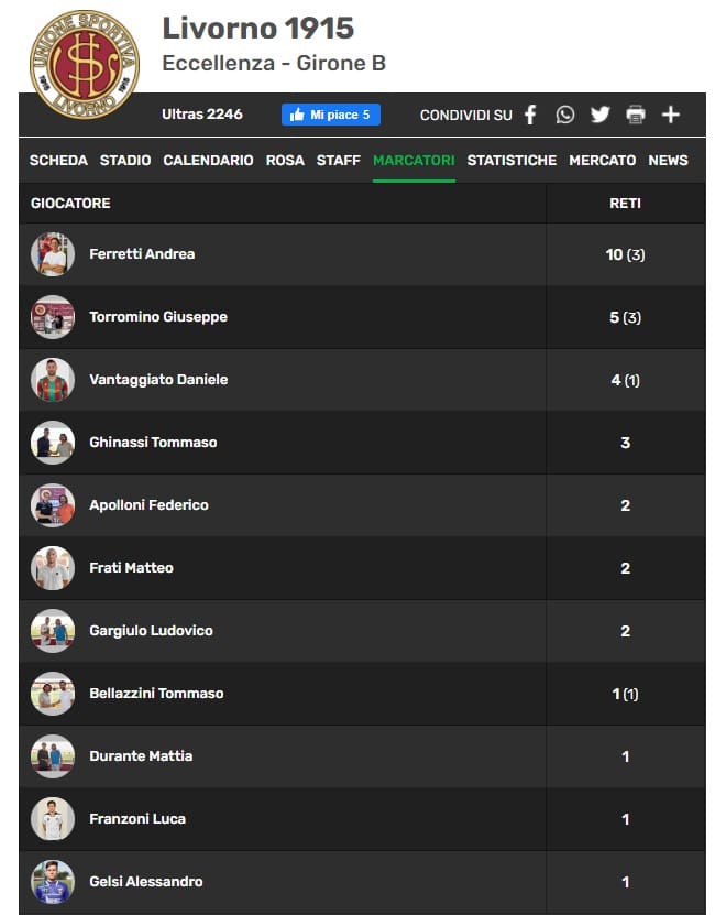 Ο Αντρέα Φερέτι με 10 τέρματα είναι το μεγάλο κανόνι της Λιβόρνο. Αναλυτικά ο πίνακας των σκόρερς της επίδοξης πρωταθλήτριας