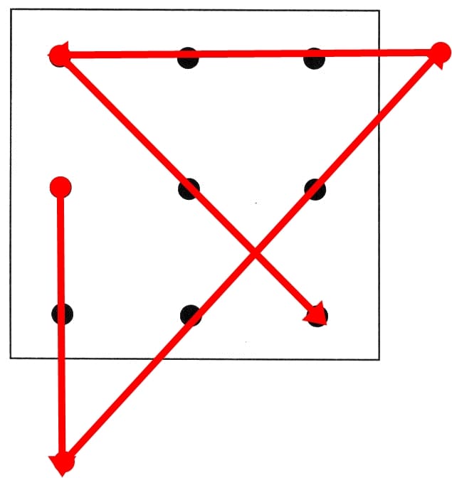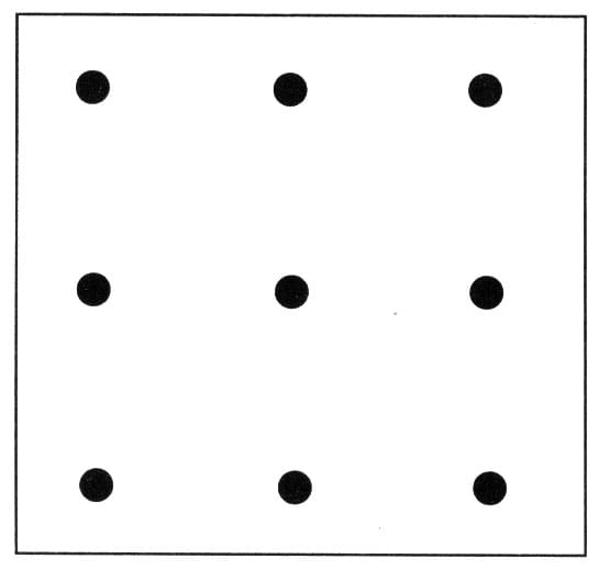 Έχουμε λοιπόν 9 κουκίδες που σχηματίζουν ένα τετράγωνο. Ο Λόιντ καλεί τους λύτες να ενώσουν και τις 9 κουκίδες, τραβώντας το πολύ τέσσερις ευθείες γραμμές, χωρίς να σηκώσουν καθόλου την μύτη του μολυβιού και χωρίς να περάσουν πάνω από την ίδια κουκίδα περισσότερες από μία φορές.