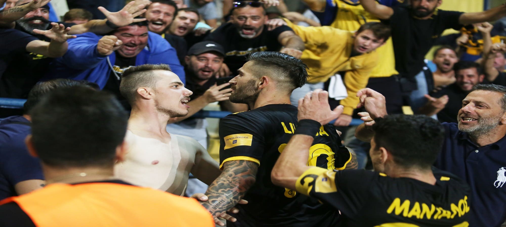 Οι φίλοι της ΑΕΚ αφού αποθέωσαν τον Βόσνιο κεντρικό αμυντικό της ομάδας, θέλησαν να στείλουν το δικό του μήνυμα στον Κούμπα που έκανε μεγάλη προσπάθεια για να αποφύγει τον κίνδυνο.