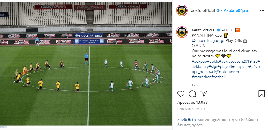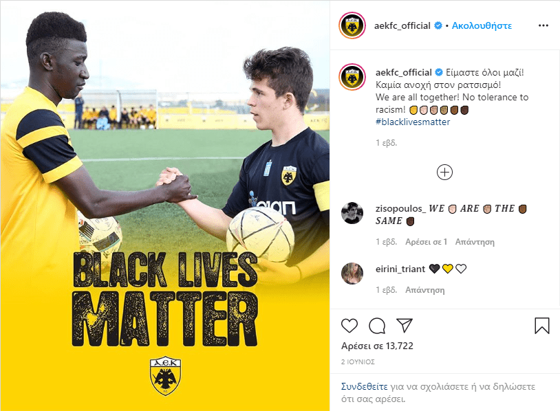 Αναρτήσεις της ΠΑΕ ΑΕΚ για την παγκόσμια πρωτοβουλία που ξεκίνησε με αφορμή τον θάνατο του George Floyd