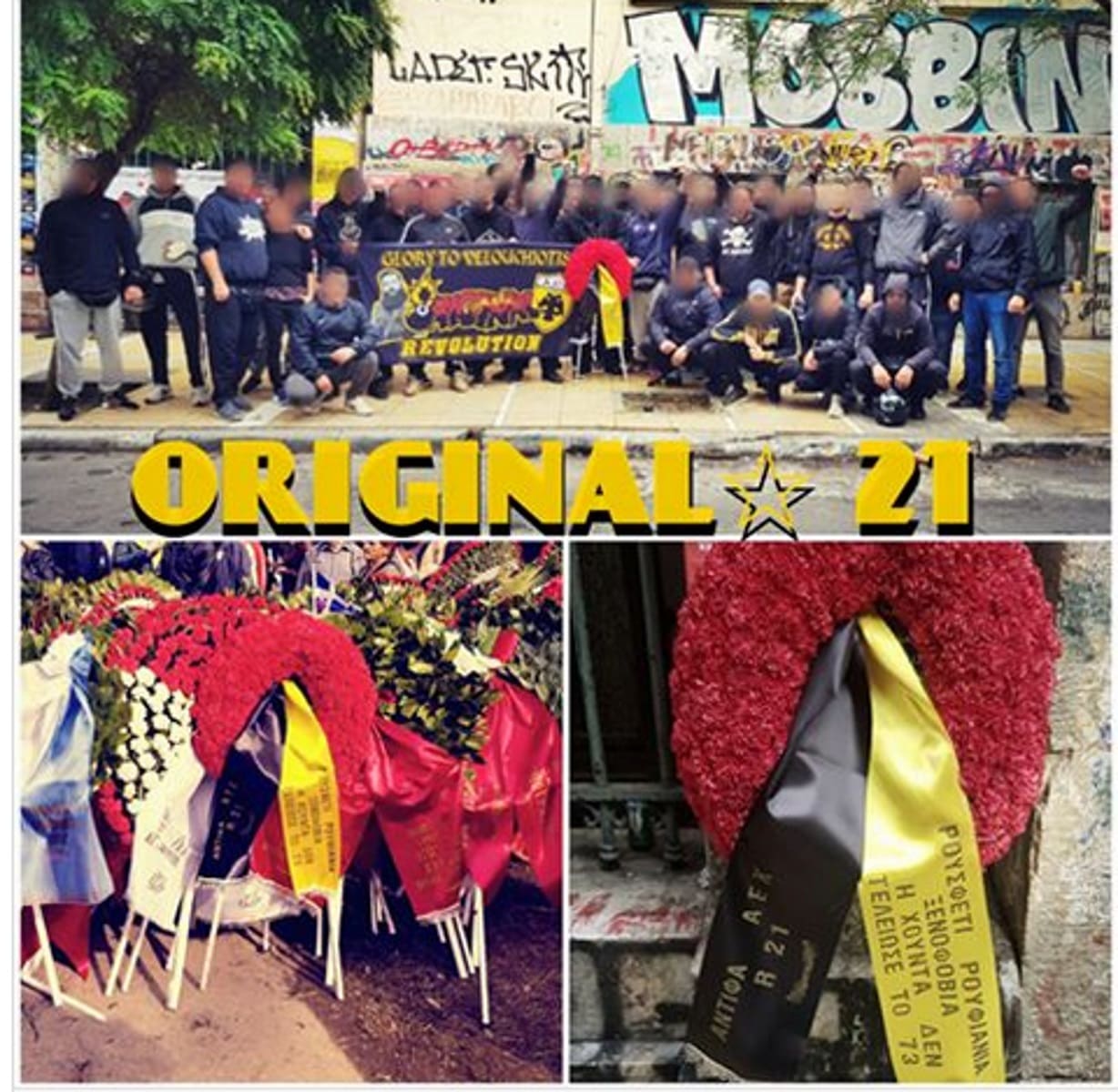 Φωτογραφία από την καθιερωμένη πλέον κατάθεση στεφάνου στο Πολυτεχνείο από την μεγαλύτερη οργάνωση οπαδών της ΑΕΚ