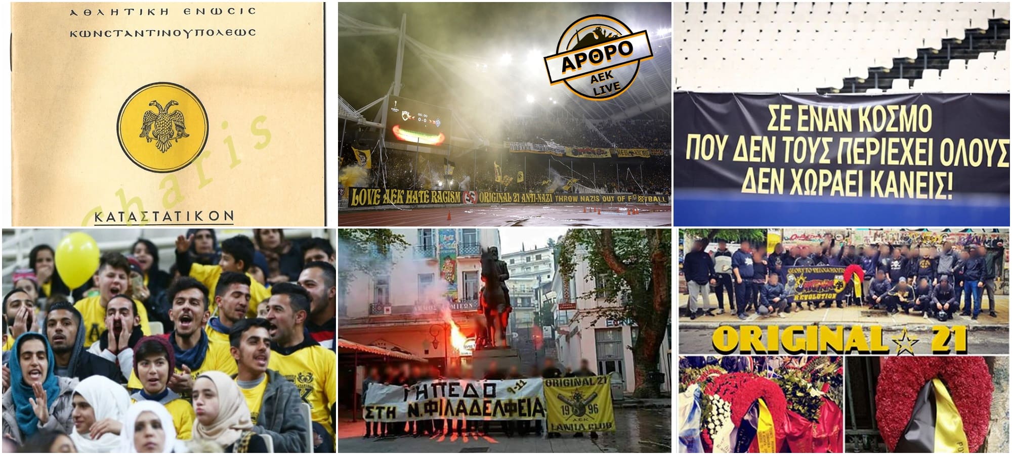 Με μια γρήγορη έρευνα συλλέξαμε τόσα πολλά στοιχεία για τη στάση της ίδιας της ΑΕΚ (ΠΑΕ και ΚΑΕ) κόντρα σε φαινόμενα φασιστικά και ρατσιστικά. Κι αν η Κική από το Ίλιον μαζί με τους καθυστερημένους που σιγοντάρουν και τα ανώνυμα trol μέχρι σήμερα έλεγαν ότι το AEK LIVE ντροπιάζει την ιστορία της ΑΕΚ, επειδή έχει πολιτική άποψη, ευτυχώς αντίθετη από την δική τους, περιμένουμε με αγωνία να μας πουν πως η ΠΑΕ, πως η ΚΑΕ , πως η ΜΑΝΑ ΑΕΚ και οι οπαδοί της, ντροπιάζουν την ιστορία της ΑΕΚ.