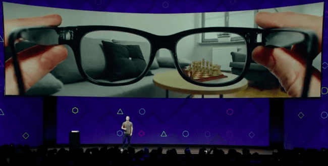 Κατά την διάρκεια της ομιλίας του Ζούκερμπεργκ στο F8 την Τρίτη υπογραμμίστηκε το όραμα της εταιρείας στην επαυξημένη πραγματικότητα με τη παρουσίαση ενός ζεύγους pret-a-porter γυαλιών τυπικής εμφάνισης τα οποία μας έδειξαν πως μπορεί κανείς να έχει μια εικονική οθόνη στο σαλόνι του ακόμα μεγαλύτερη κι από την τηλεόρασή του.