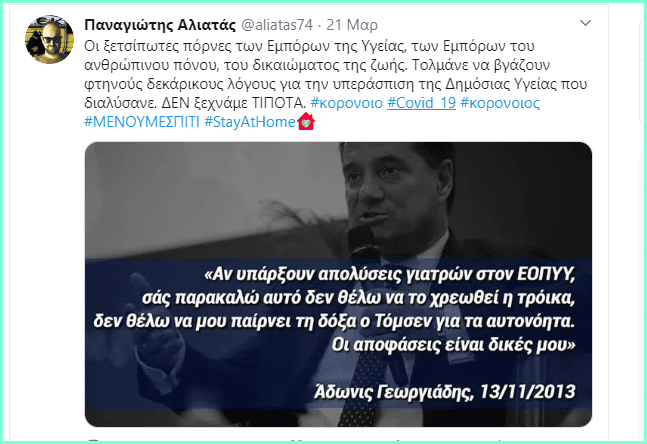 ΚΑΡΦΙΑΤολμάνε να μιλάνε για υπεράσπιση της Δημόσιας Υγείας Published 6 έτη agoon 19 Απριλίου 2020By Παναγιώτης Αλιατάς Views 1.086 Related Topics: Up NextΚάποιοι έχουν χάσει τελείως το μέτρο… Don't MissΗ φορολογία έφταιγε Παναγιώτης Αλιατάς Continue Reading Advertisement You may like