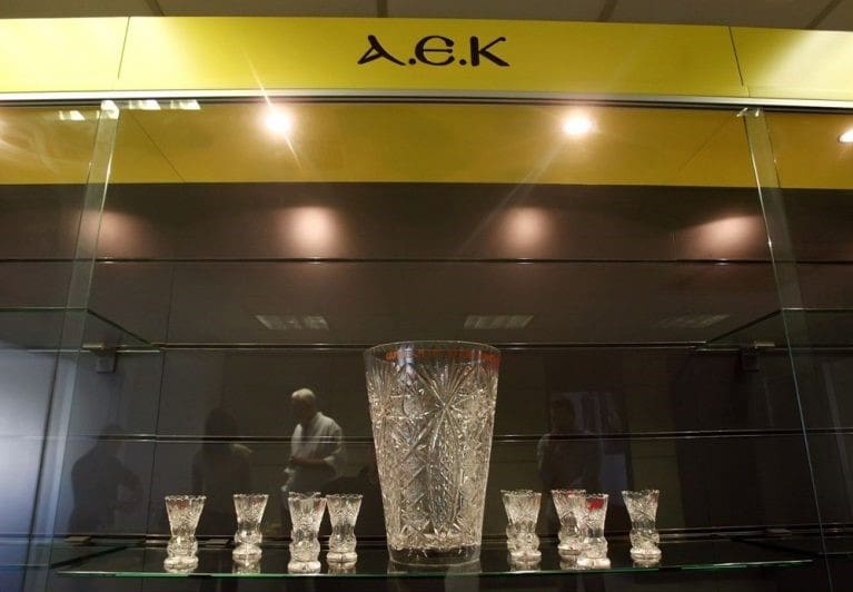 Στα νέα γραφεία υπάρχει και η τροπαιοθήκη της ΑΕΚ, που δυστυχώς προς το παρόν είναι σχεδόν άδεια…