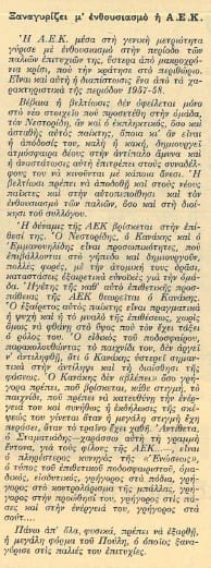 ΜΕ ΕΝΔΙΑΦΕΡΟΝΞαναγυρίζει… με ενθουσιασμό η ΑΕΚ Published 4 έτη agoon 30 Ιουλίου 2022By Νικόλας Αγγελίδης Views 950Τεύχος 9 του αθλητικού περιοδικού “Τα Σπορ” που κυριαρχούσε στον αθλητικό τύπο τη δεκαετία του ’50Διαβάστε το μεγάλο αφιέρωμα στην ΑΕΚ της εποχής που ετοιμάζει τη μεγάλη της αντεπίθεση με πρώτο και καλύτερο στο τιμόνι του Κώστα Νεστορίδη Related Topics: Up NextΗ ΑΕΚ του Χανς Τιλκόφσκι Don't MissΜια Κυριακή ξεκίνησα… για τον Θωμά τον Μαύρο Νικόλας ΑγγελίδηςΜε ρίζα από την Πόλη και παππού αθλητή της πρώτης ομάδας βόλεϊ της ΑΕΚ δεν θα μπορούσα παρά να είμαι παράφορα ερωτευμένος μαζί της Continue Reading Advertisement You may like