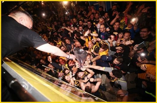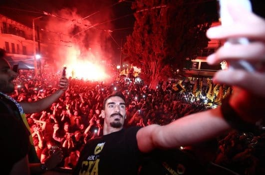- Ο κόσμος της ΑΕΚ αποθεώνοντας έναν ποδοσφαιριστή που 99% δεν θα είναι μαζί μας τη νέα χρονιά, στέλνει το μήνυμα του. Εδώ υπάρχει μια ποιοτική μαγιά οπαδών που δε μπορείτε εύκολα να τη βάλετε στο χέρι.