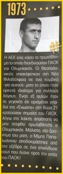 - Δεν ξέρω αν νικάμε γιατί δεν μπορούμε να χάσουμε, ξέρω όμως ότι δεν μπορεί να μας νικήσει κανείς, γιατί η δική μας ΑΕΚ δε χάνει ποτέ. Ακόμα και οι μεγαλύτερες ήττες δεν είναι δικές της αλλά της όποιας εξουσίας την περιτριγυρίζει. Γι’ αυτό άλλωστε ο τεράστιος λαός αυτής της ομάδας δεν αποθέωσε σε κανένα σημείο του μαγικού σαββατοκύριακου κανέναν οικονομικό ηγέτη.